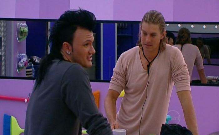 8:41pm: Jamie and David are in the gym. Jamie is worried as Katie just told him that he is too polite sometimes. Jamie goes onto say that if he bought his girlfriend home for dinner one night he expects the person to be polite at the table. David completely agrees. In the bedroom Rob and Dave are talking. Rob wonders what he can do, or stop doing to prevent being nominated. Dave thinks that bitching is not always needed, but he should try to minimise it. Rob says thanks. Rob tells him he is beyond his years in this house. Dave knows, but says he would be friends with himself. Dave asks if he would be friends with himself. Rob says that he would be wary.