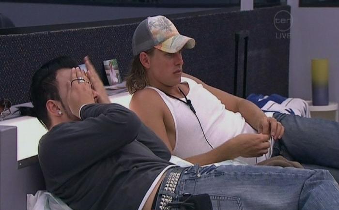 11:53pm: Jamie and Dave are still outside. Krystal is still there too. Dave is saying that in every situation in life when you're getting pissed off at something, everyone has to let off steam to somebody else. In here, it looks like bitching Dave says. Krystal says that if someone close to her does something big that pisses her off, she'll forgive them, but it will never be forgotten. She says that in here the slightest thing gets way out of control. Rob says that he has been into BB to request something, and offered to sleep somewhere else, but BB was saying no all along. Uplate update, then back outside. Dave says that everyone in the house has been through heaps. Jamie says that being nominated now isn't a problem, he's over that. He also says he wants to stay. 12:10am: Jamie says that he thinks Camilla looks for controversy. He thinks Krystal doesn't really strive to get into battles. Jamie tells him that he is always evaluating his contribution to the group. Dave asks what he thinks about Rob, but Rob comes out at that moment. Dave wonders if Rob is tired, he says he is. Jamie is worried he's getting a slight off white patch on his legs or something. Rob says he should moisturise. Jamie says he will. Jamie says that this week he hasn't had Katie to run off and sulk this week. Dave says that he thinks Jamie that yesterday and today have been must better than the previous week where he thought he was really down. Jamie says that a lot of stuff was going through his mind last week, and he says that Dave did it so well last week. 12:24am: Jamie is saying that he can't talk to one of the girls in the house. I don't know who he is talking about. Dave says that if everyone took that view the place would be in a bad 'place'. Jamie understands, but says that his positive side tells him that he can always counter an argument, prime example talking to Rob tonight. Jamie says he almost had a breakdown last week, and was over the whole BB experience. Dave says it was frustrating that he couldn't talk to Jamie about it last week because of his moods. Claire says goodnight to the boys. Dave says that last week he felt like he lost a mate last week. Dave says everyone acts in a certain way, and he felt as if he had done something to piss Jamie off, and of course he realises now that it wasn't him. Dave says the thing that hurt him was that Jamie was only concerned completely about himself last week. Jamie agrees completely. Dave says last week he thought heaps of people had stopped talking to because they all thought that he was a goner. Dave says last week he was making massive issues out of nothing. Jamie says it's a great relief to get things off his chest tonight. Comm break. 12:43am: Jamie loves doing stupid shit in front of people, being a class clown type of thing. He says he would love to be a TV presenter, he thinks he would be quick on his feet with lines, comebacks etc. Jamie says that he was glad he was out in the last round for FNL. Dave says that Office FNL theme he was the same, he was totally worried about the stand up comedy part of FNL. Dave says he would never do something like that out in the real world. We head inside to Gaelan, John and Ashley. They are discussing the different jobs in the house, especially the dishes. They say many have complained about the dishes. John says Tilli hated it. He says that Dino gave Elise the housekeeper job so she had to get up early. They all have a laugh. We cut to Rob who seems to be sleeping on the floor for some reason. Back out to the couch. John says that double they all knew Jade would be one of the ones evicted, but otherwise it was wide open. John thought he might be gone. He says that when he was up with Michael and Karen he wasn't too worried. Comm break. 12:59am: Dave has come into chat with Gaelan and Ashley. Dave is talking about climbing a mountain so he could see the entire country. No idea what country he is talking about. John says that it's great because you can see the barriers at the borders of the country. Dave says this countries biggest export is dentures. John and Dave talk about some country flags. They seem to be discussing Angola, I have no idea. Dave just keeps talking about his travels. He says he joked with someone checking his passport over the Australia/Austria joke. 1:15am: Jamie says goodnight to the small bedroom. He heads back out to the living room. Dave is still chatting to the other guys. John says he left Venice after 6 hours and was upset about that. He names heaps of places he didn't go to, and then says he left his passport behind somewhere and was denied entry and had to smuggle a train back to where his passport was. John tells a story how he got 400 Euro's out of the wall at the train station and these guys came along and he was convinced he'd be robbed, but there was one nice guy in their group and he was fine. He says he eventually got back his passport and continued his travelling. Dave talks for a bit about some country. He says he got to Poland and realised that everything was dearer than in Germany. Dave says that he could get a massive meal for $5 in Checz (not even gonna try to spell it). 1:30am: Dave is talking about catching a bus somewhere overseas. He says he travelled with some random guy. They wonder if he was gay, but he says he didn't know, but says he was hot. He had Visa issues in Latvia. Dave says he had no interest in Lithuania. Dave says he was over in Europe for 13 months, and $23,000 all up. He says he worked in Britain a bit as a landscape gardener. He says he had no idea what he was doing but he had 3 people working for him and he had to pave a huge area and put a pond in. He says that as soon as it rained it would've stuffed up completely. He says that he got heaps for doing it, but they soon realised he had no idea what he was doing. John says that all his mates just worked in pubs overseas. Gaelan says that trade jobs overseas are easy to get because they are all crap 